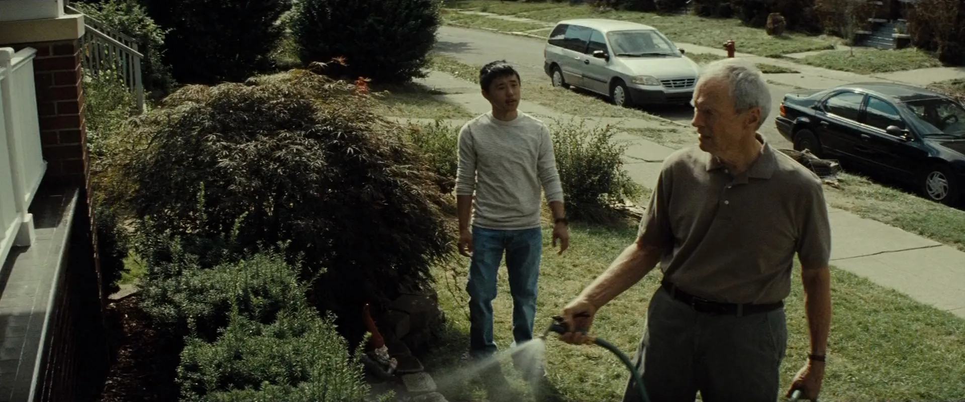 Cast: Clint Eastwood as Walt Kowalski, Christopher Carley as Father Janovich, Bee Vang as Tao Vang Lor, Ahney Her as Sue Lor, Brian Haley as Mitch Kowalski, Geraldine Hughes as Karen Kowalski, Dreama Walker as Ashley Kowalski, Brian Howe as Steve Kowalski, John Carroll Lynch as Barber Martin, William Hill as Tim Kennedy, Brooke Chia Thao as Vu, Chee Thao as Grandma Vang Lor, Choua Kue as Youa, Scott Eastwood as Trey, Xia Soua Chang as Kor Khue, Doua Moua as Fong/Spider, Sarah Neubauer as Paralegal, Lee Mong Vang as Hmong Gang Banger 3 (uncredited), Nana Gbewonyo as Monk (uncredited), John Anton as Family Friend (uncredited), Austin Douglas Smith as Daniel Kowalski, Ramon Camacho as Latino #3 (uncredited), Rio Scafone as Day Planner, Thomas D. Mahard as Mel, Arthur Cartwright as Prez (uncredited), Julia Ho as Dr. Chu, Elvis Thao as Hmong Gangbanger, Clint Ward as Officer, Shelagh Conley as Extra (uncredited), William C. Fox as Family Friend (uncredited), Tony Stef'Ano as Man on Street (uncredited), Carey Torrice as Blonde (uncredited), Sonny Vue as Smokie, Greg Trzaskoma as Bartender, John Johns as Al, Davis Gloff as Darrell, Conor Liam Callaghan as David Kowalski, Michael E. Kurowski as Josh Kowalski, Maykao K. Lytongpao as Gee, Carlos Guadarrama as Head Latino (uncredited), Andrew Tamez-Hull as Latino Gangbanger (uncredited), Antonio Mireles as Latino Gangbanger (uncredited), Tru Hang as Hmong Grandfather (uncredited), Marty Bufalini as Lawyer (uncredited), My-Ishia Cason-Brown as Muslim Receptionist (uncredited), Rochelle Winter as Waitress (uncredited), Claudia Rodgers as White Woman Neighbor (uncredited), Darline Bucchare as Church Member (uncredited), Jeffrey Scott Basham as Man on Street (uncredited)
